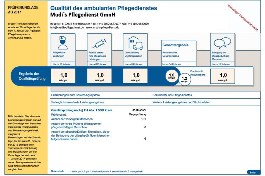 Im März wurde Mudi's Pflegedienst im Rahmen der turnusmäßigen Qualitätsprüfung nach § 114 Abs. 1 SGB XI durch den Medizinischen Dienst umfassend geprüft. Dabei konnte unser Pflegedienst in allen geprüften Kategorien überzeugen und erhielt die Bestnote 1,0.